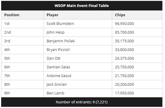 Samuti pole finaallaud domineeritud ameeriklaste poolt. Siin on 2 prantslast (Saout ja tunnustatud turniirimängija Benjamin Pollak), 2 britti (Hesp ja John Sinclair) ja argentiinlane Damian Salas.